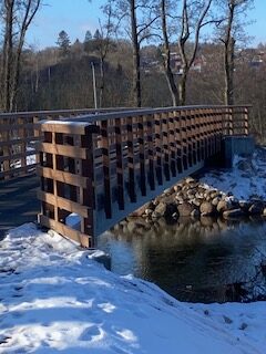 En driftig lokal borger tog kontakt til Østeby Træ som kunne reparere broen, så den kunne bruges indtil vi kunne få en ny bro. Borgmesteren blev kontaktet og så kom der gang i reparationsarbejdet. 10 november 2024 blev Broen under stor festivitas genåbnet – Borgmester Helle Gade klippede sammen med Bent Vestergaard den røde snor.